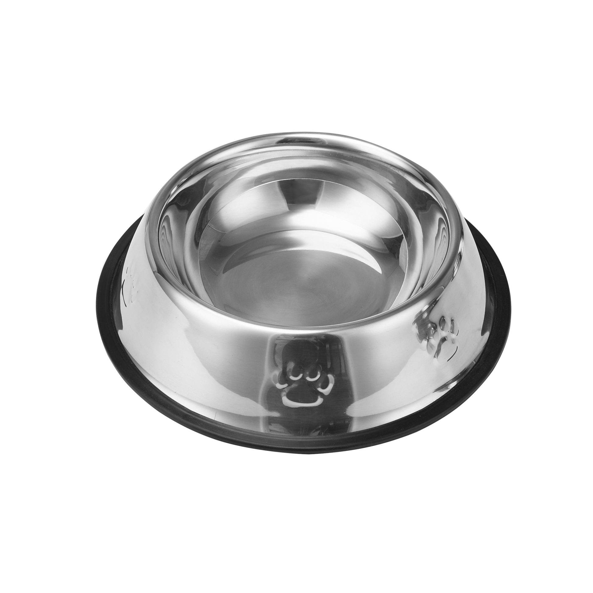 Our Anti-Skid Stainless Steel Pet Bowl is 33.8 oz. in capacity. Beautifully-crafted stainless steel bowl for pets. Great for home and travel. Dishwasher safe with anti skid rubber bottom. For medium-large size dogs, cats, and other similarly-sized pets.