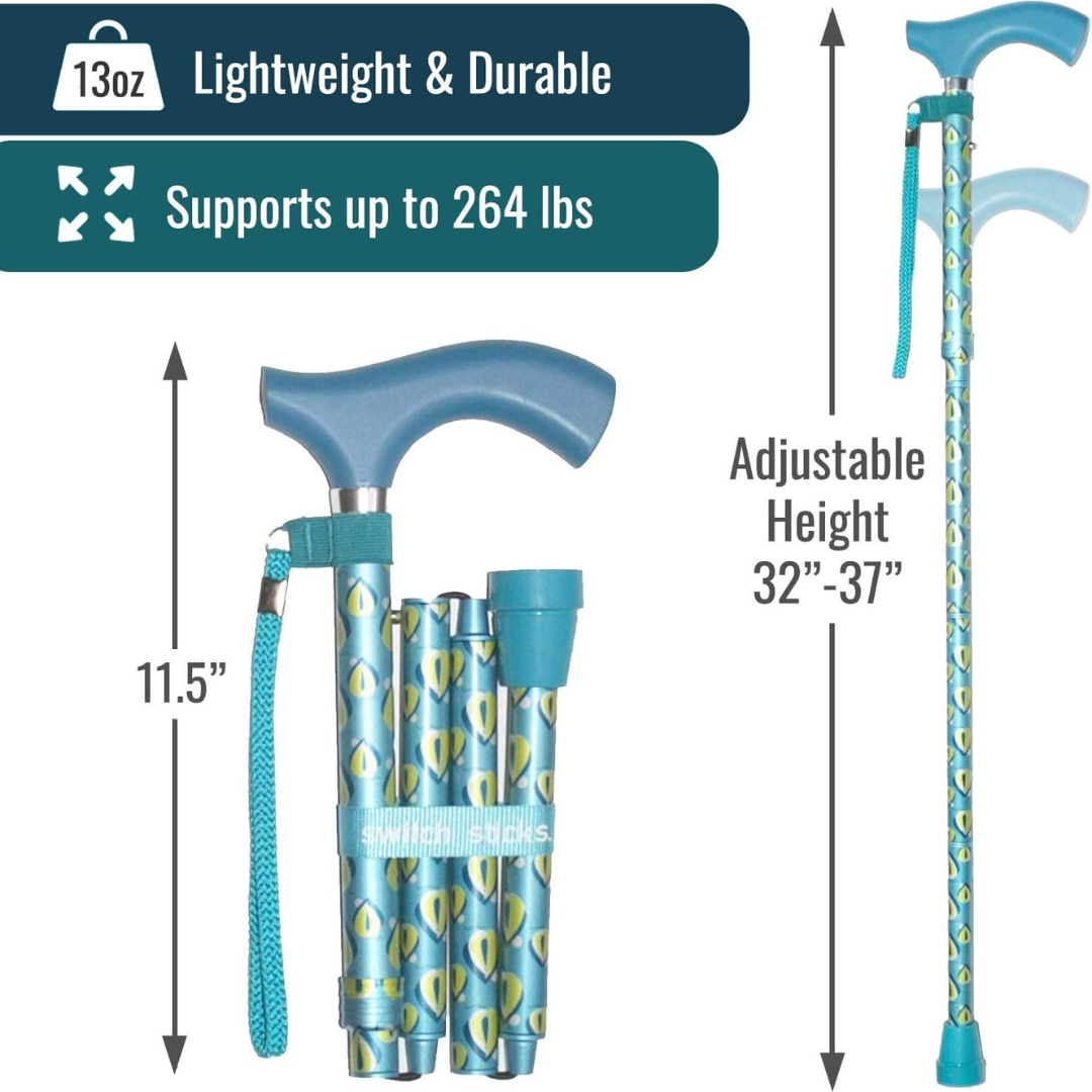 Great For: Individuals requiring adjustable walking support, whether for everyday mobility, travel, or recovery, in both home and outdoor settings. What Sets It Apart: Crafted by Mabis Healthcare and part of the trusted Switch Sticks® brand, this folding cane combines elegance with proven durability, making it a versatile choice for active lifestyles and safety-conscious users.