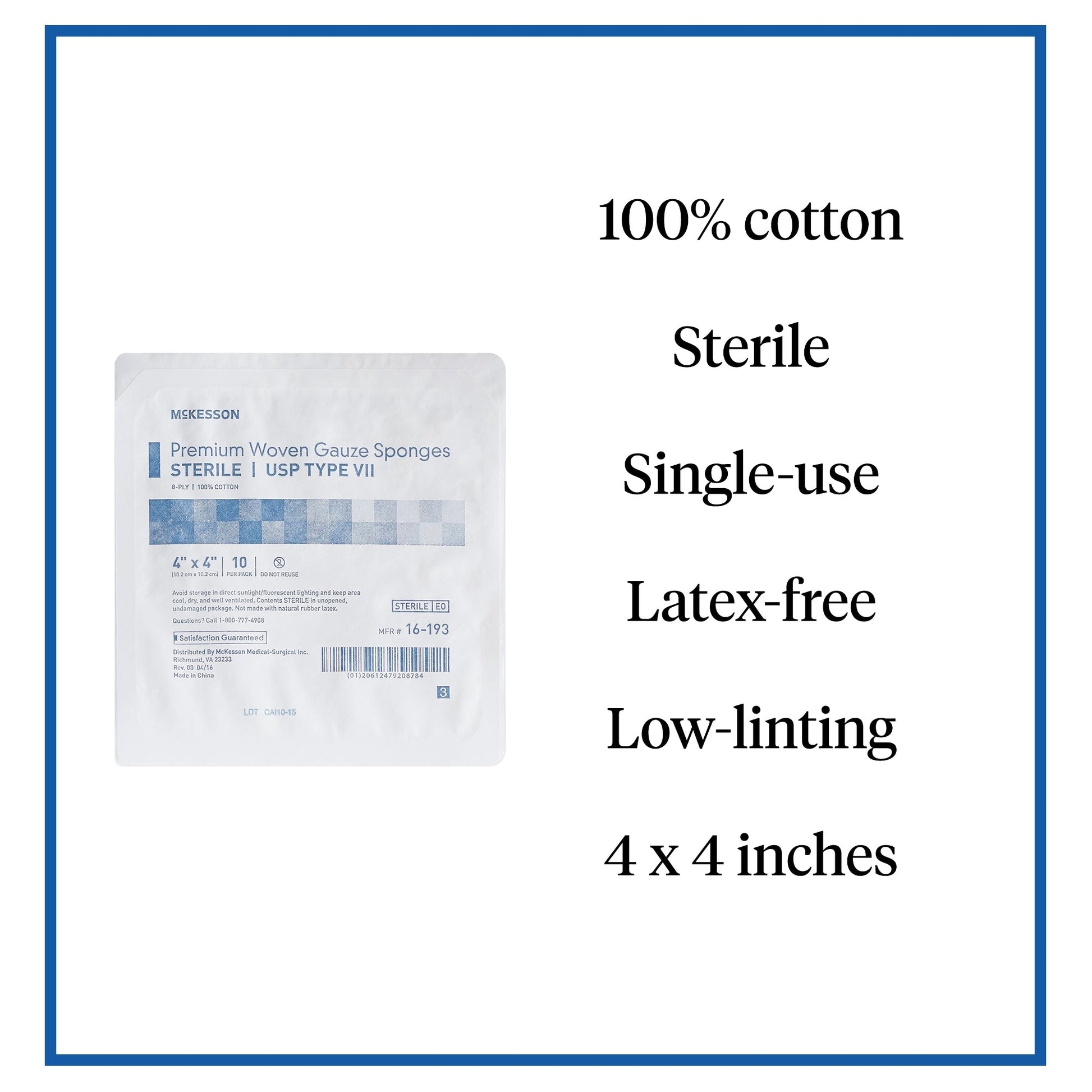 What Sets It Apart: Trusted by medical providers for consistent quality, McKesson’s sterile gauze sponges meet USP standards, ensuring optimal safety and effectiveness in wound care.