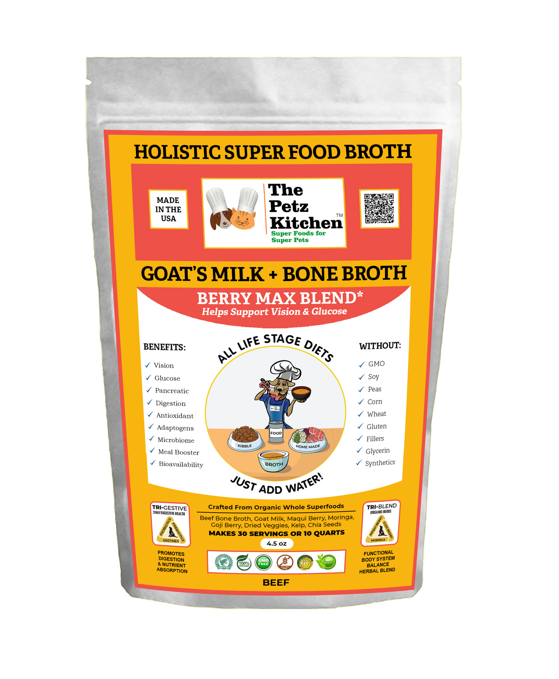 Goats Milk + Bone Broth Berry Max Antioxidant Vision & Glucose Support Broth* The Petz Kitchen Dog & Cat Holistic Super Foods*