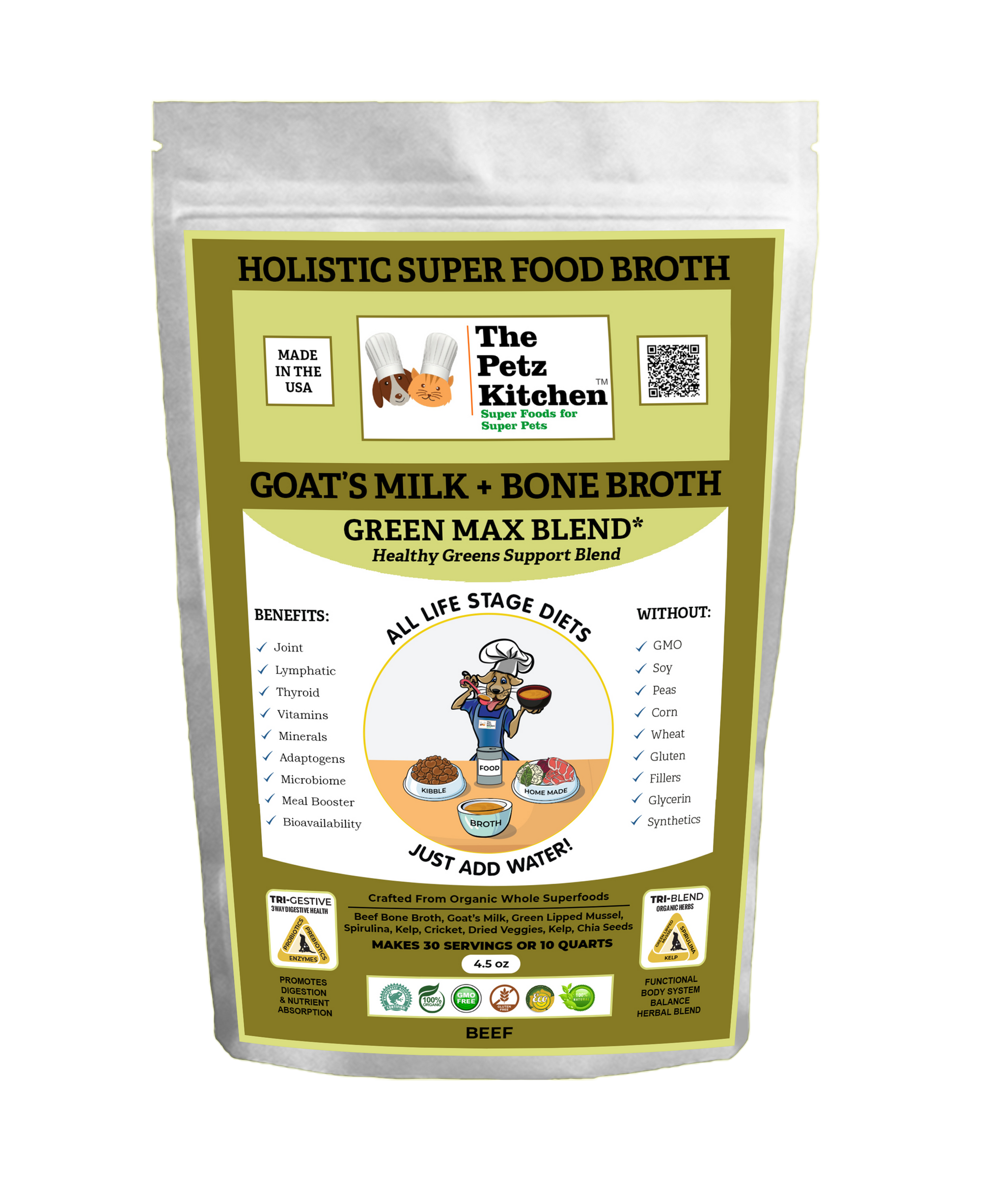 GOATS MILK + BONE BROTH GREEN MAX BLEND - OMEGA 3 and 6 VITAMIN and MINERAL SUPPORT* THE PETZ KITCHEN for DOG and CAT