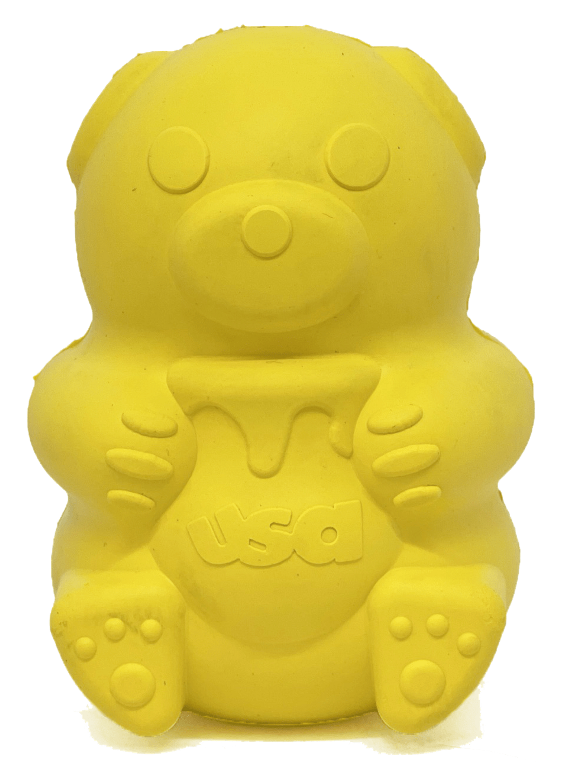 • DURABLE CHEW TOY: The Honey Bear Toy is designed to withstand the abuse of most "power chewer" dogs. This product is made from durable Natural Rubber.