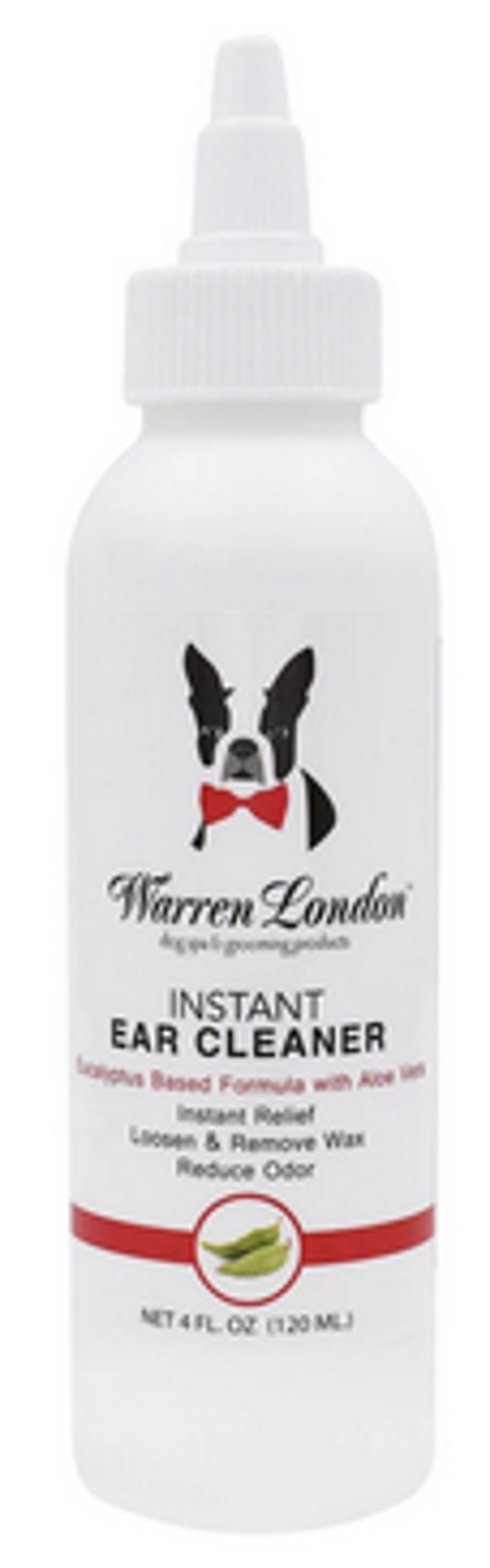 Warren London Instant Ear Cleaner is a gentle and effective cleanser, which cleans, deodorizes, acidifies, and dries the ears to prevent odor, itching, and irriation without stinging. Contains aloe vera and natural eucalyptus extract to rejuvenate and provide relief.